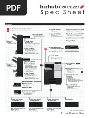 Bizhub c287/c227 quick start guide. Biz.konicaminolta.com website management team konica minolta, inc. 28/14 ppm in black & white and colour. 28/14 ppm in black & white and colour. Bizhub 287 feature 7 inch operation panel provides industry top class multitouch sensitivity, user friendly interface and intuitive operability.